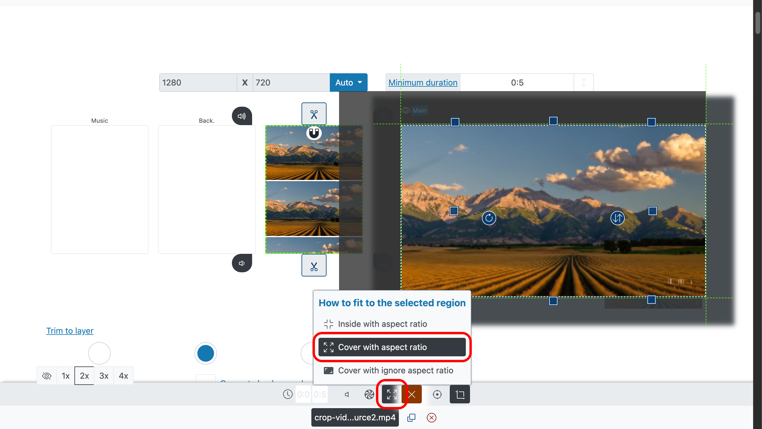Efter beskæring bestemmer du, hvordan indholdet skal udfylde det valgte område ved hjælp af på kontrolpanelet:
