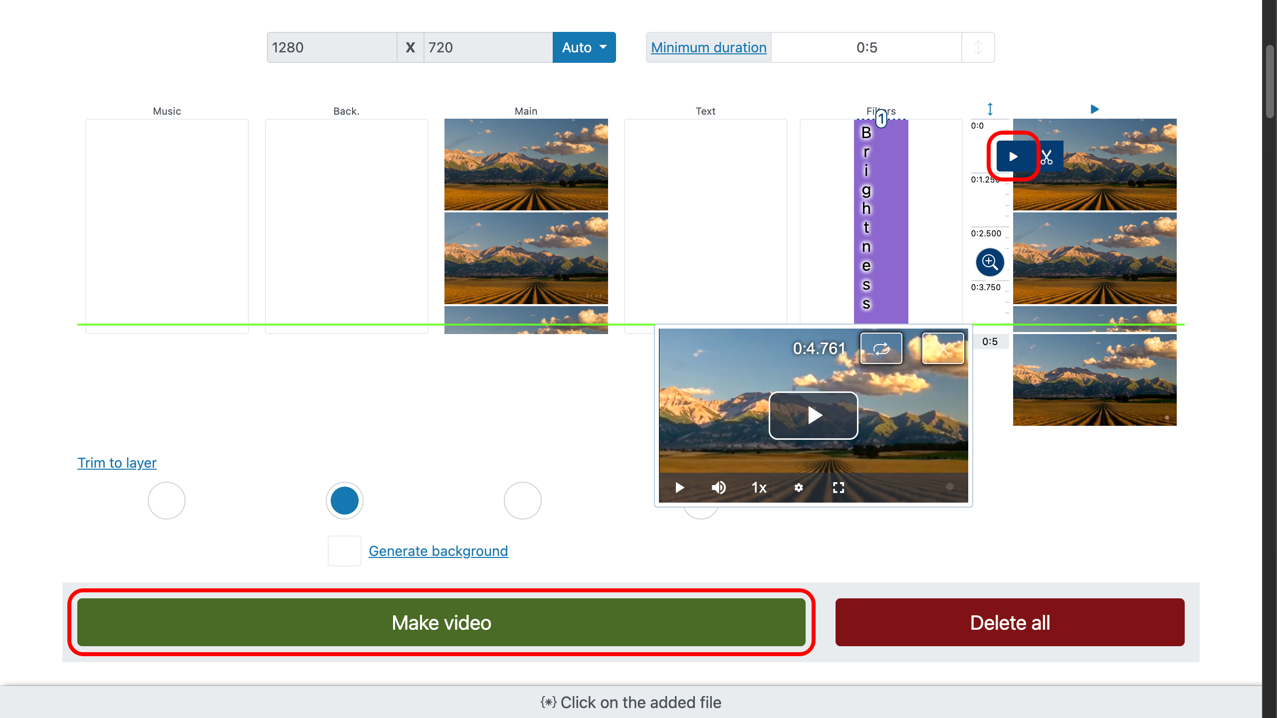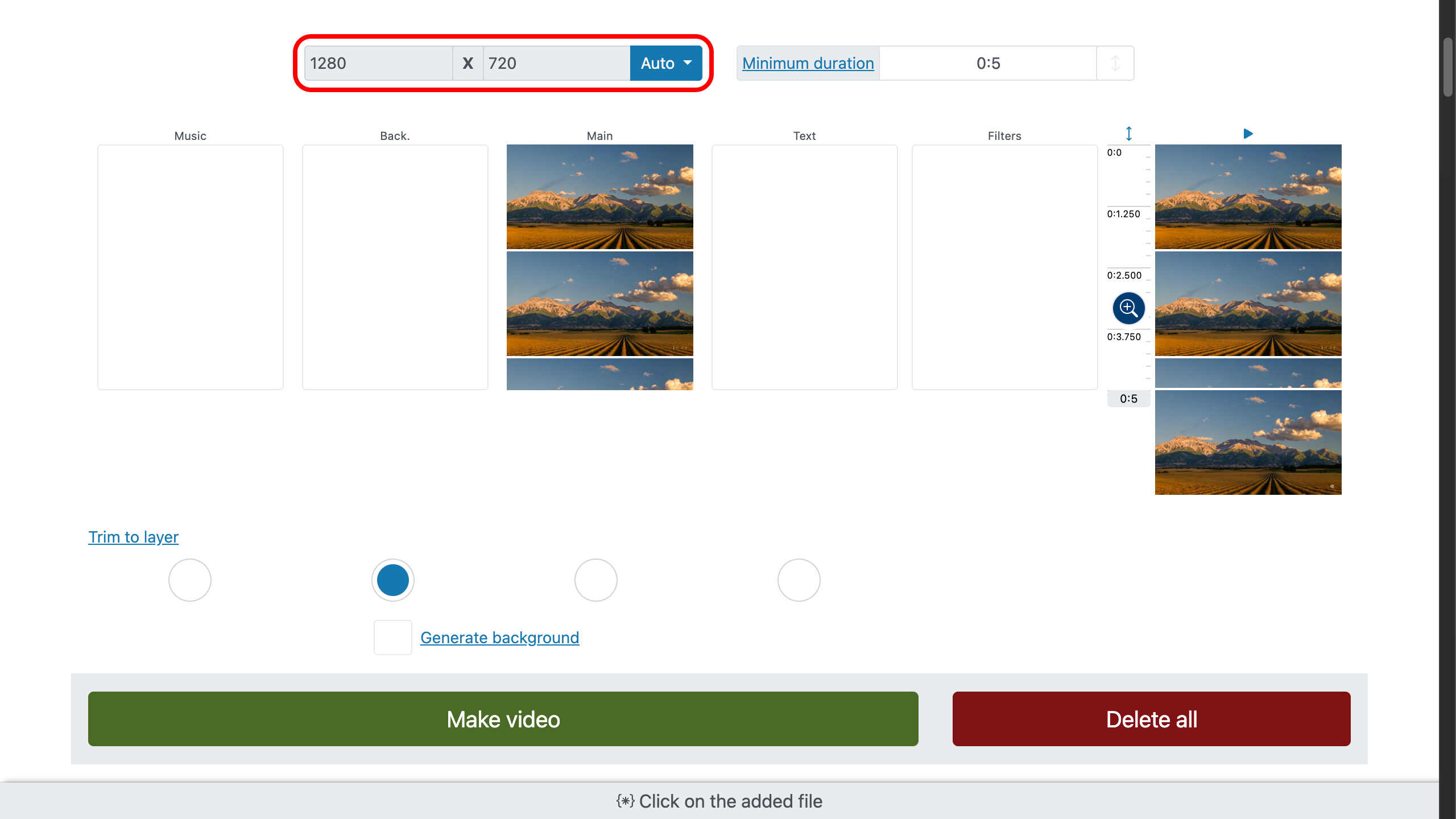 - Hvis du uploader flere filer, vælger editoren automatisk det mest egnede format til projektet.
